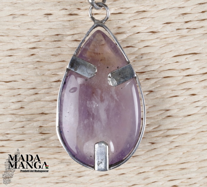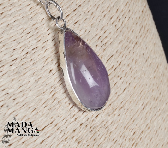 Ciondolo con ametrino (ametista+citrino) montato in argento, dimensioni mm.19x32H, venduto con catenina in acciaio.