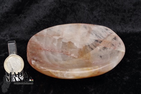 Ciotola in Quarzo Ematoide, lavorata e lucidata a mano, dimensioni cm.11,5x11x2,4H, peso 294 grammi.
