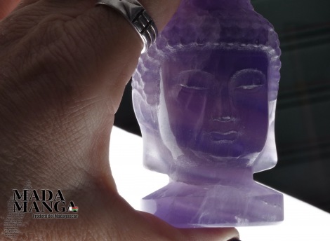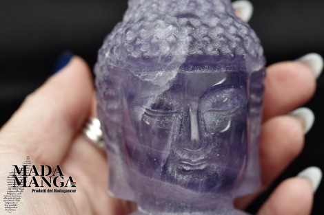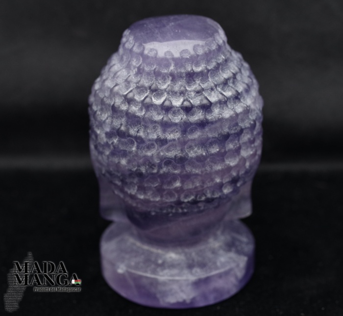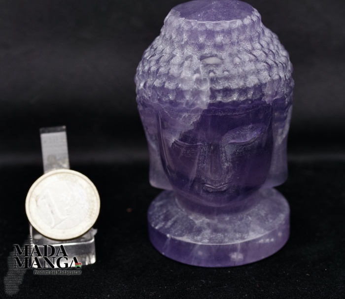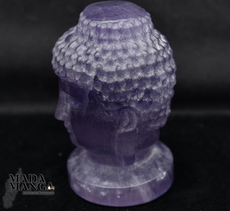 Testa di Buddha realizzata in bellissima fluorite viola, dimensioni cm.5x8H, peso 317 grammi.