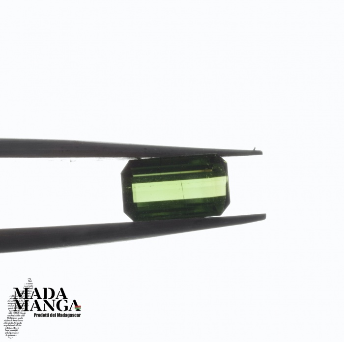 Tormalina verde del Mozambico, di bella trasparenza, taglio ottagonale, dimensioni mm.7,5x4, 1,29 carati.