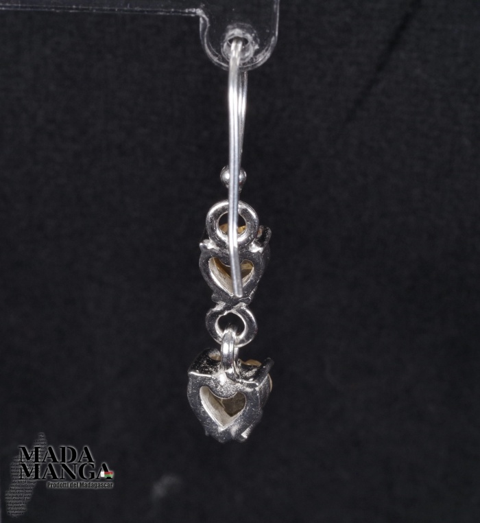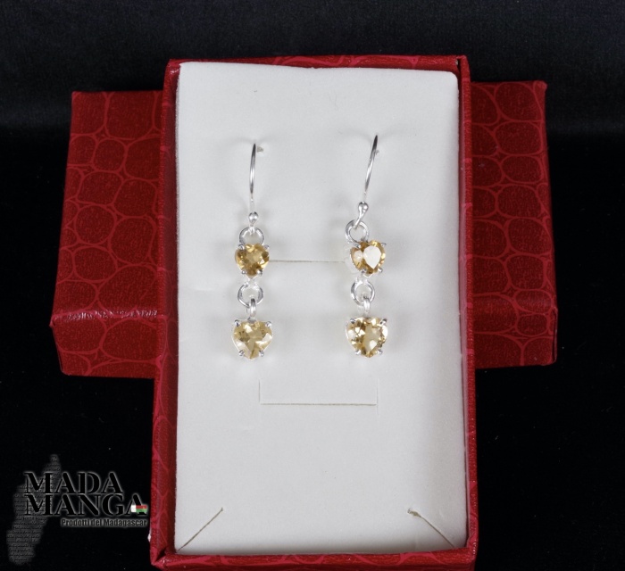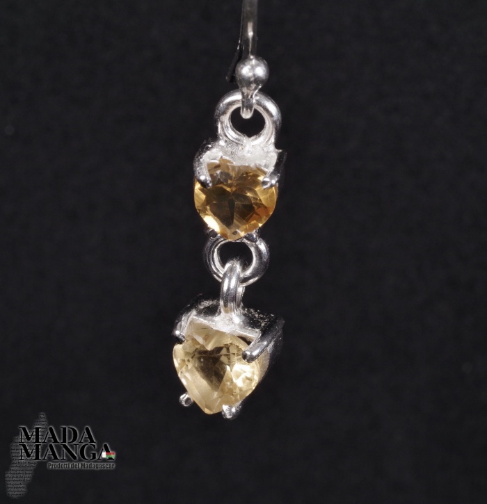 Orecchini in Argento 925 con quarzi citrini tagli a cuore, dimensioni mm.6x25, peso 3,6 grammi. Venduti con scatolina regalo. Gli orecchini sono realizzati in pezzo unico per modello.
