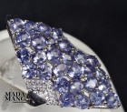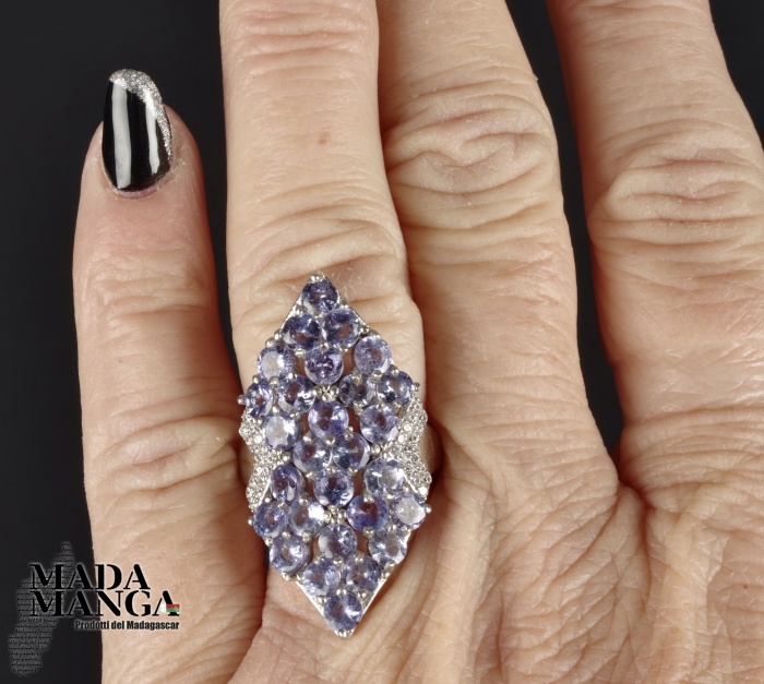 Elegante Anello in Argento 925 con placcature in oro bianco, con tanzaniti da mm.3,5, peso 5,6 grammi.