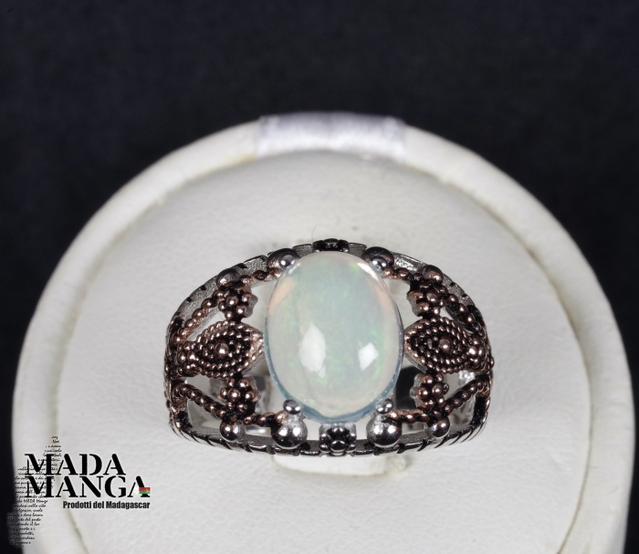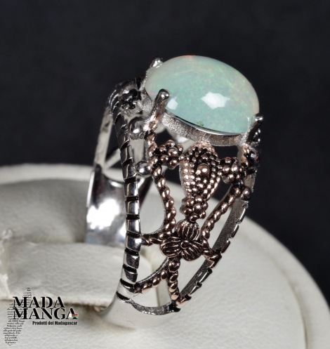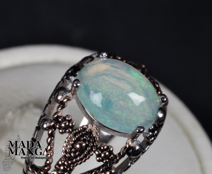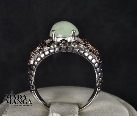 Anello in Argento 925 con placcature in oro rosa, con opale etiope da mm.10x8, peso 3,6 grammi.