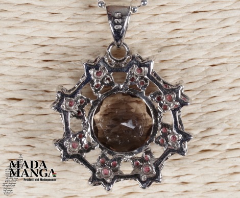 Ciondolo in Argento con Quarzo fumè e rodoliti
