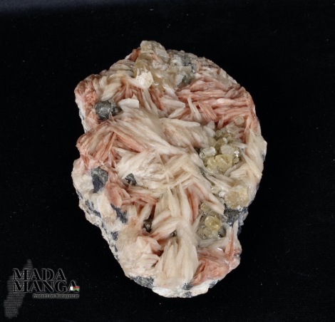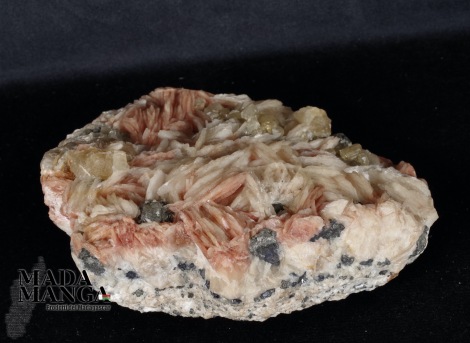 Barite con Cerussite (fluorescente, vedere video illuminata con UV) su Galena, prov. Marocco, dimensioni cm.8,8x6,5x4,3, peso 412,5 grammi.
