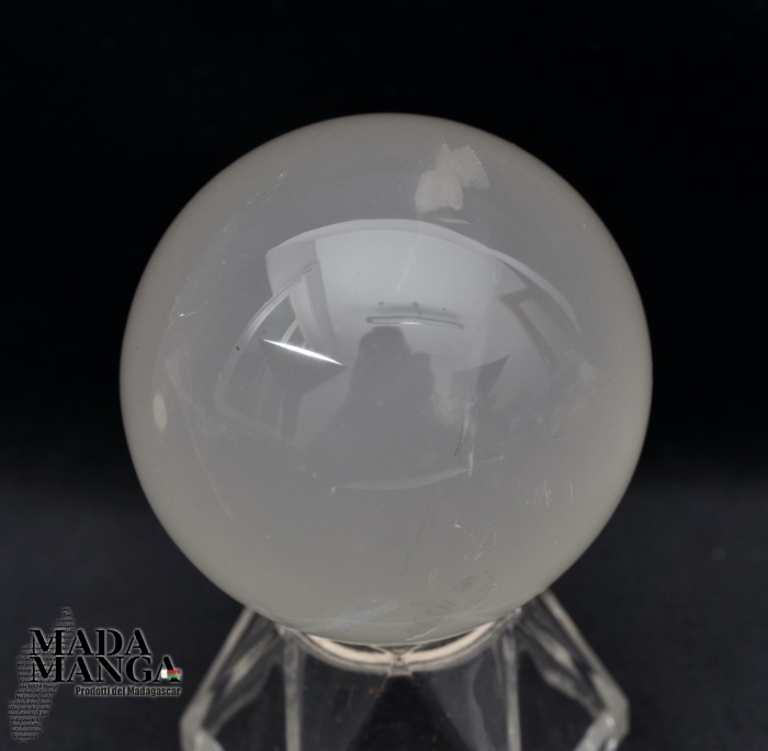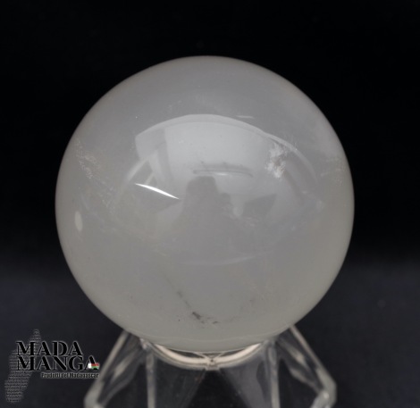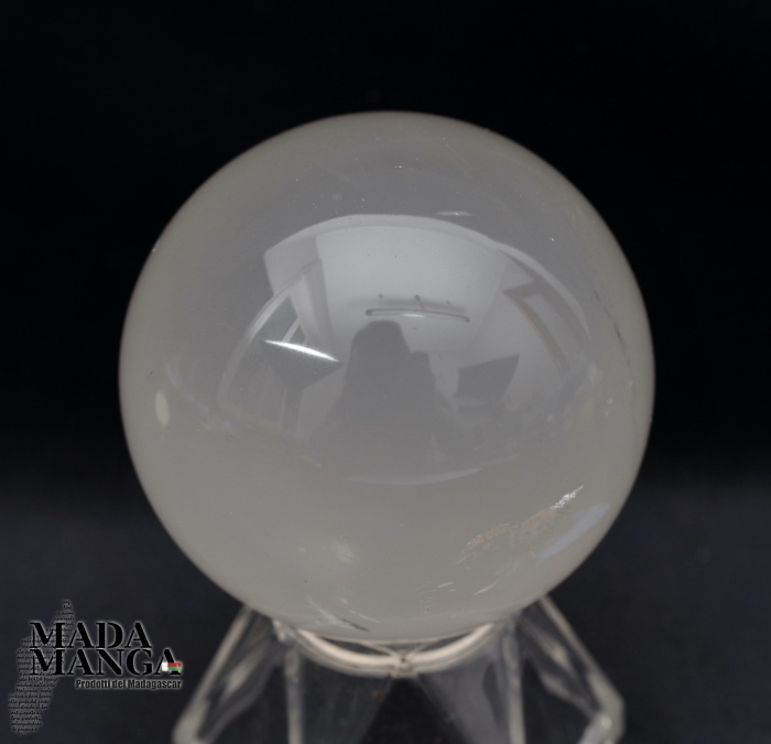 Sfera in Quarzo Latte sotto la luce fa effetto "occhio di gatto", provenienza Madagascar, lavorata e lucidata a mano, diametro cm.5, peso 175,5 grammi.