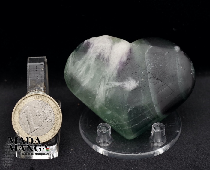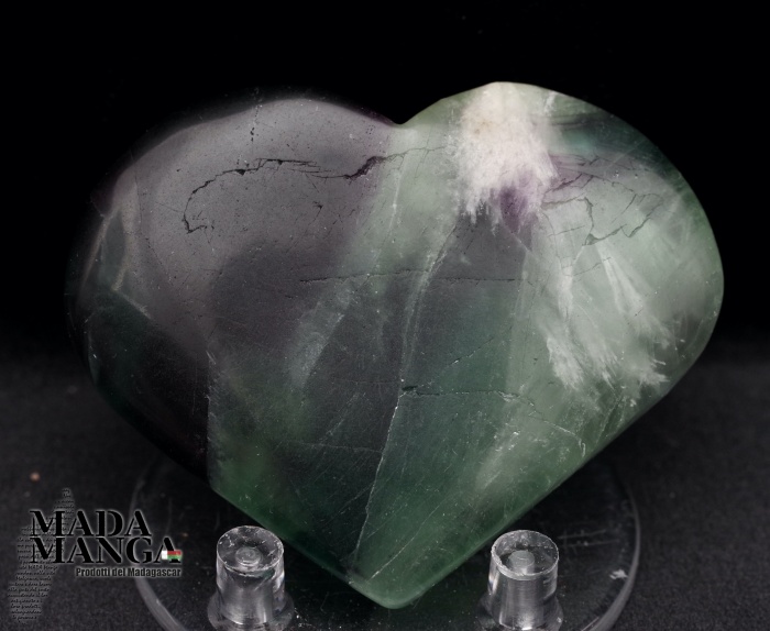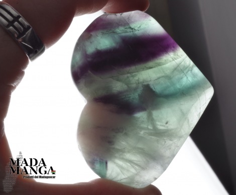Cuore in fluorite policroma (verde e viola), dimensioni cm.6x4,9x1,5 spessore, peso 79,5 grammi.