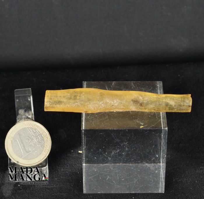 Pezzo di Copale (resina sub-fossile) grezza del Madagascar, con inclusioni di insetti e fibre vegetali, dimensione mm.10x10x69, peso 4,7 grammi.