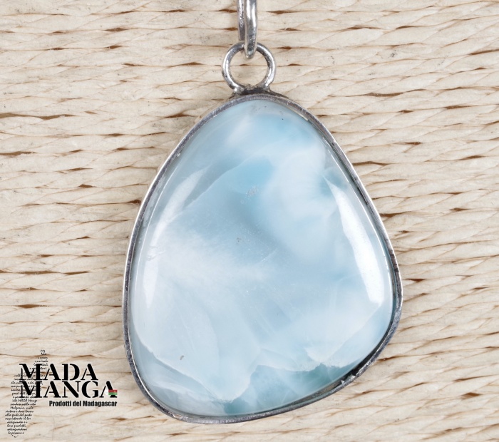 Ciondolo in Larimar di Santo Domingo montato in argento, dimensioni cm.2,5x2,9H, peso 7,4 grammi.