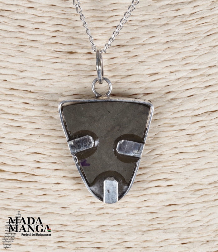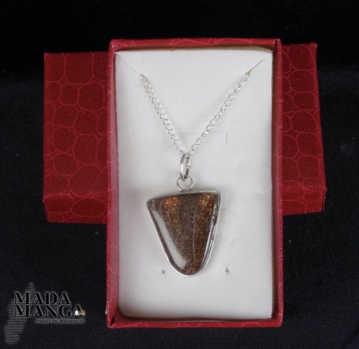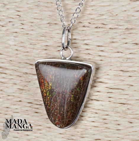 Ciondolo con Ammolite, montata in argento, dimensioni cm.2,1x2,4H, peso 6,1 grammi.