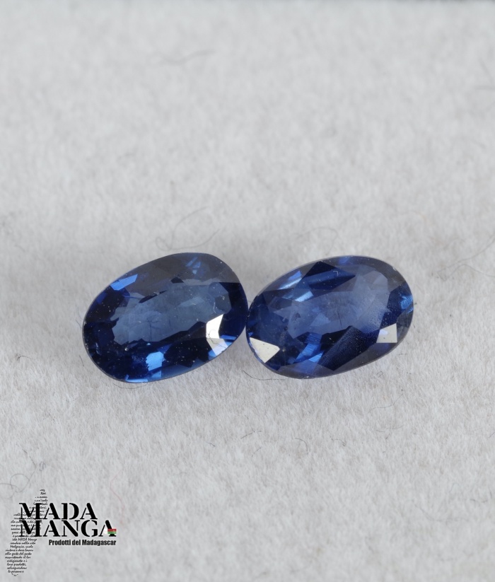 Coppia di zaffiri blu del Madagascar, dimensioni mm.6,2x4, carati complessivi 1,26.