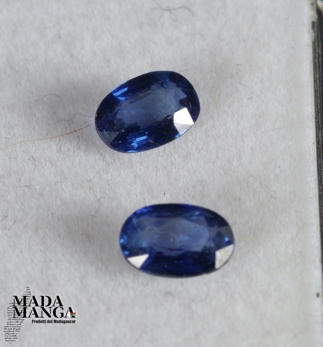 Coppia di zaffiri blu del Madagascar, dimensioni mm.6,2x4, carati complessivi 1,26. Trattati termicamente.