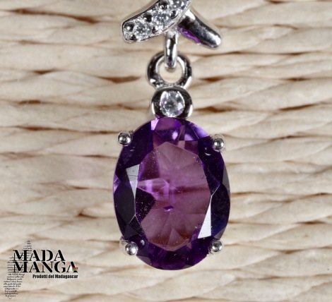Ciondolo in Argento 925 con placcature in oro bianco con ametista da mm.6x8 e zirconi.