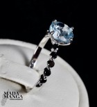 Anello in Argento 925 con placcature in oro bianco, con topazio da mm.7x7 e spinelli neri.