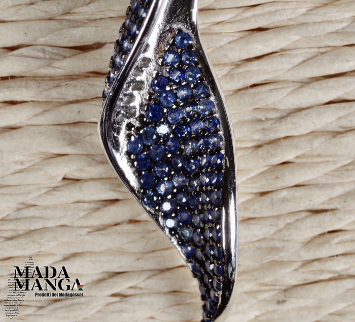 Ciondolo in argento 925 con tempestato di piccoli zaffiri blu, dimensioni mm.8x35H.