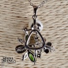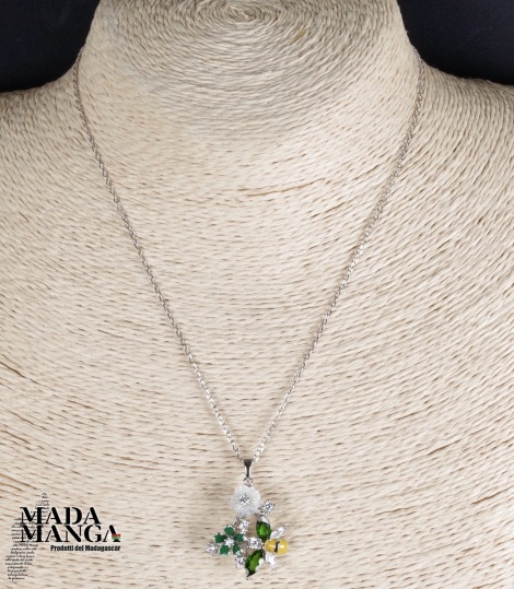 Collana in Argento con Cromo Diopsidi, madreperla e zirconi