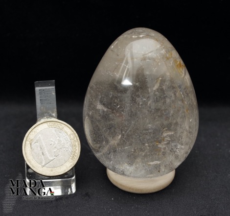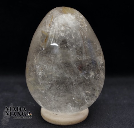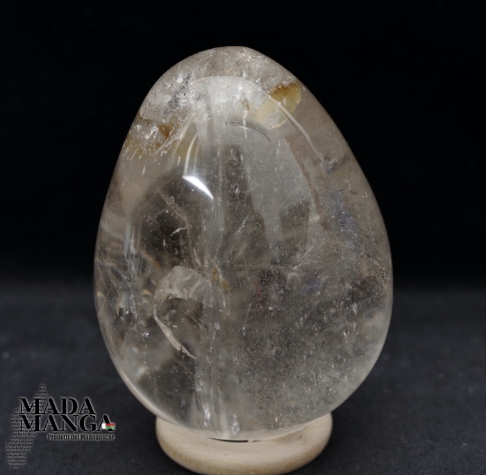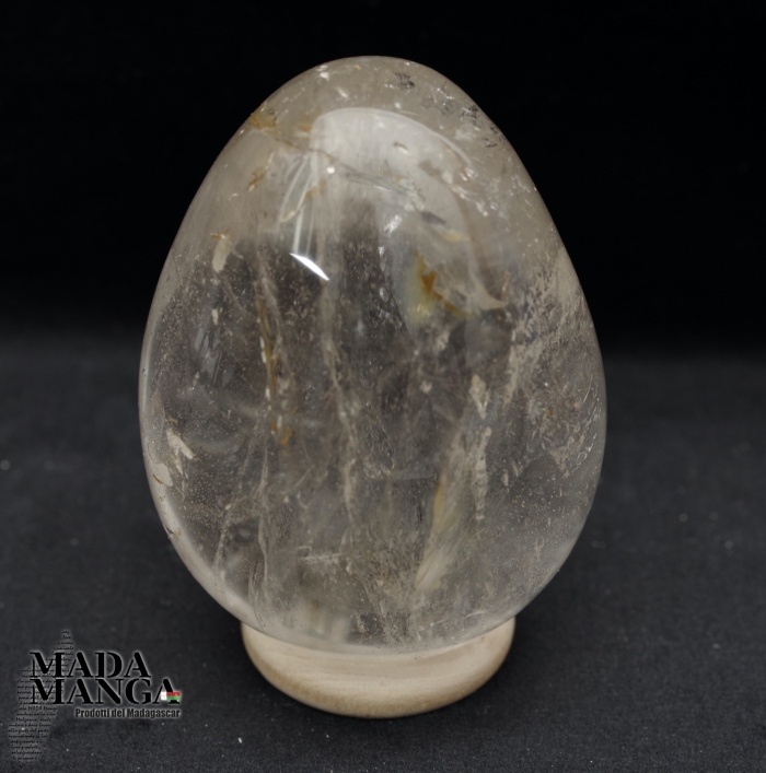 Uovo in Quarzo Ialino di bella trasparenza, realizzato e lucidato a mano, dimensioni cm.4,6x6,2H, peso 177 grammi. Provenienza Madagascar