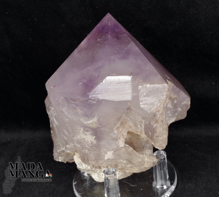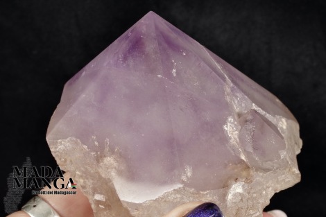 Punta di Ametista grezza nella parte inferiore e lucidata parte superiore, dimensione cm.7x8,3x8H, peso 295,3 grammi, provenienza Madagascar.