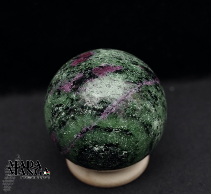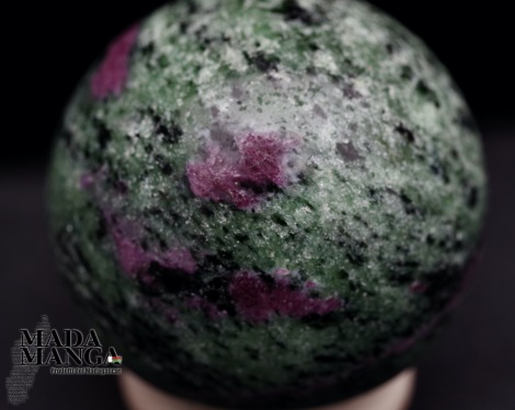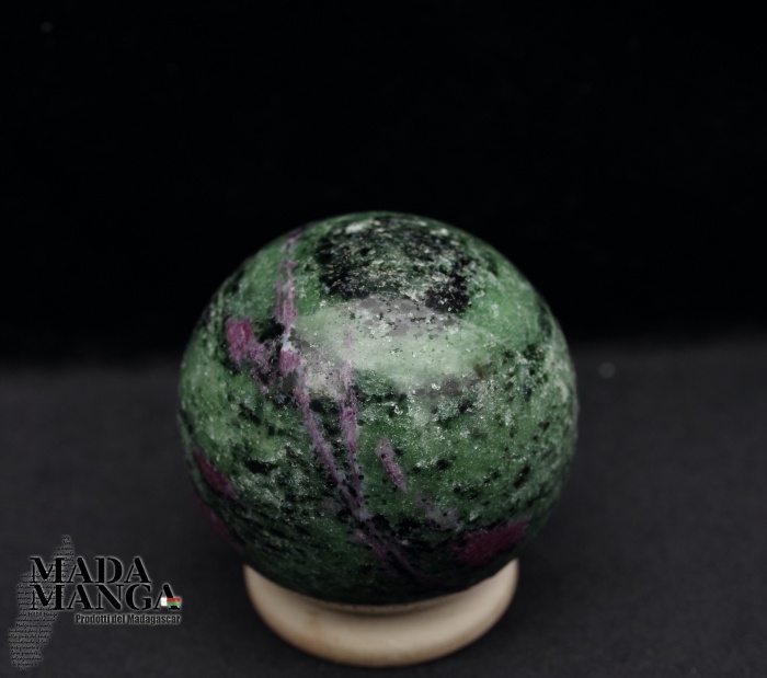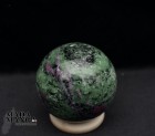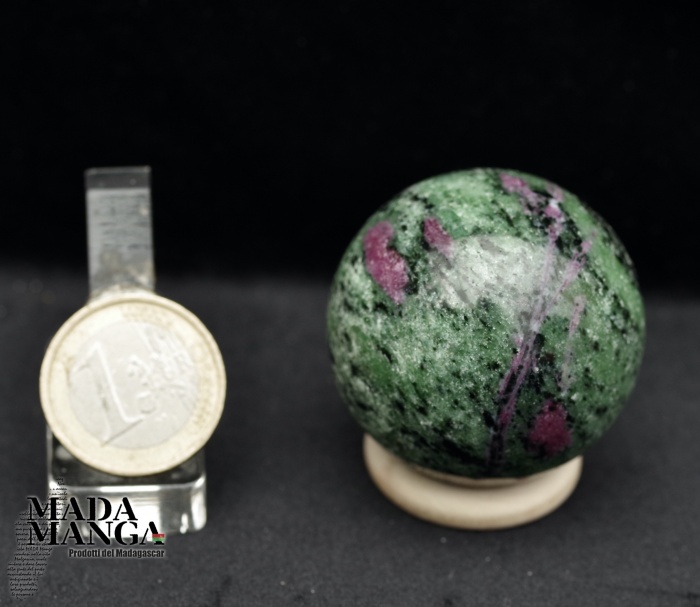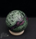 Sfera in zoisite con radice di rubino, diametro cm.4, peso 112,5 grammi.