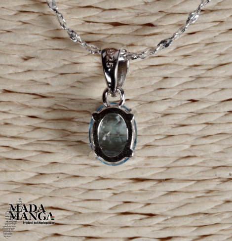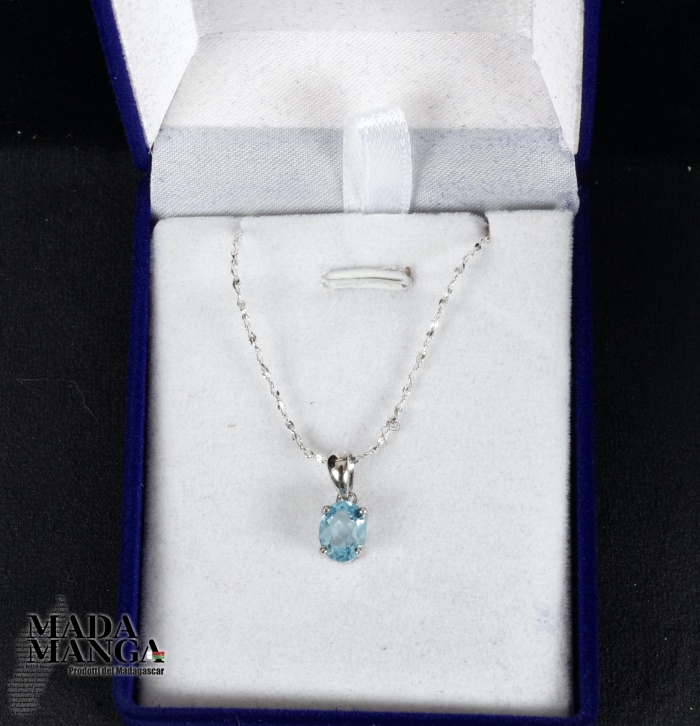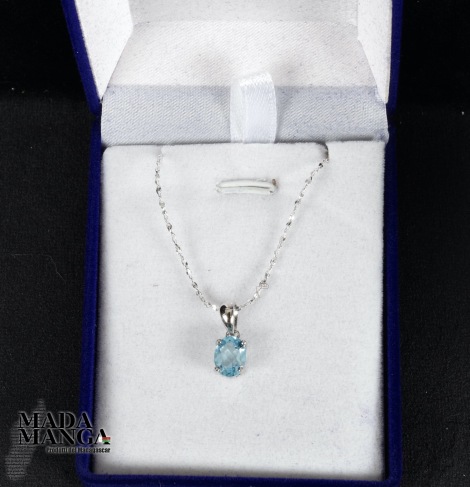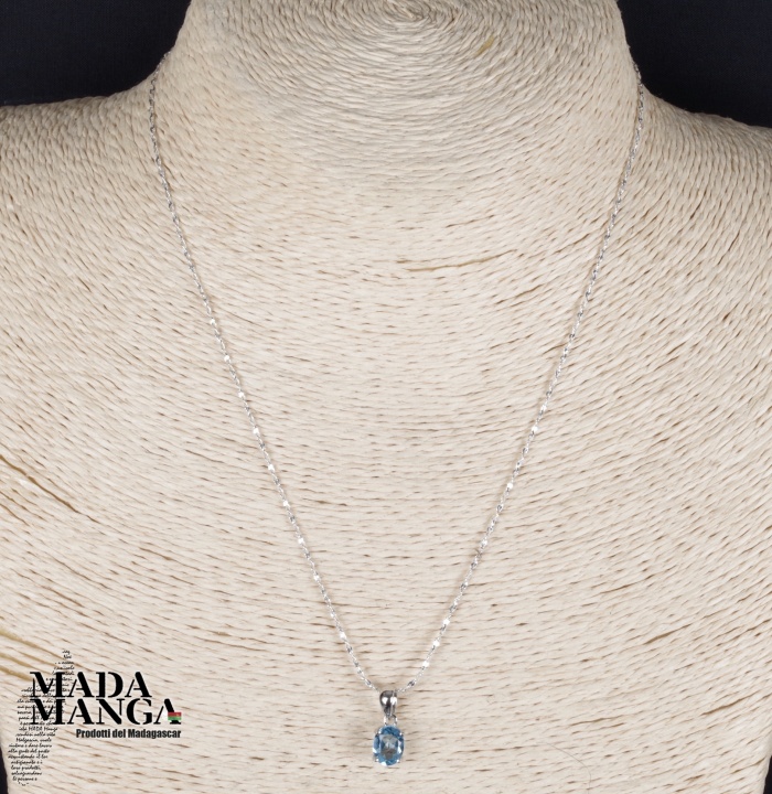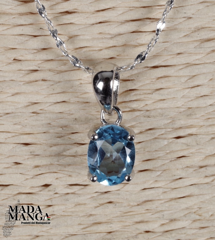 Ciondolo in Argento 925, con placcature in oro bianco, con topazio da mm.8x6, peso 1,2 gramm1. Venduto con catenina placcata argento e con scatola regalo.