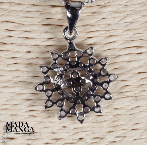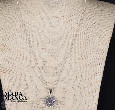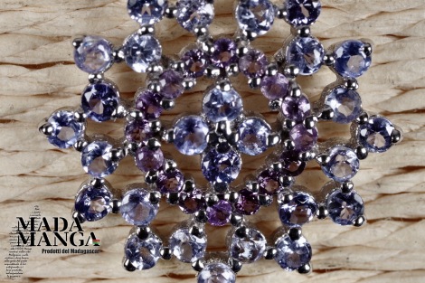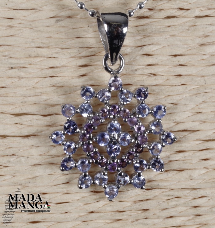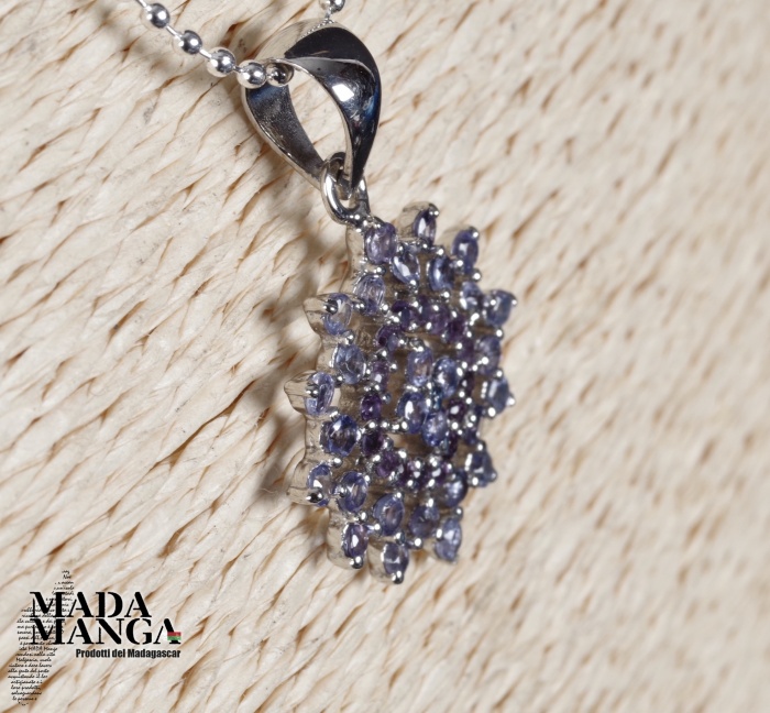 Ciondolo in Argento 925 con placcature in oro bianco, con tanzaniti e ametiste, dimensioni cm.2x2.