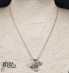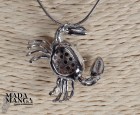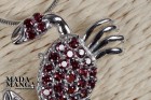 Ciondolo a forma di granchio in Argento 925 con placcature in oro bianco, tempestato di rodoliti da mm.2.