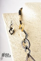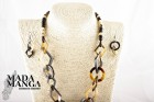 collana in corno completa di orecchini, con particolari geometrici, chiusura collana in corno,la collana e gli orecchini sono interamente realizzati a mano, lunghezza collana 54 cm