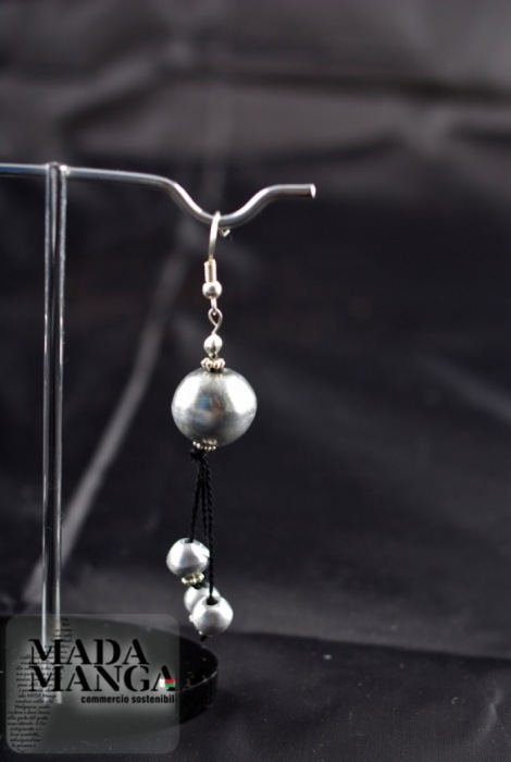 Orecchini in corda e particolari in Alluminio riciclato a sfera, realizzati a mano, lunghezza cm.7.