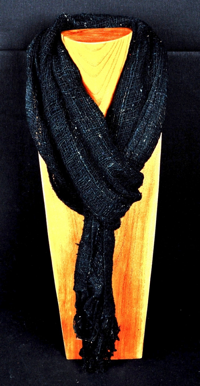 Sciarpa in Seta grezza di colore nero con frange, realizzata artigianalmente lunghezza cm.160.