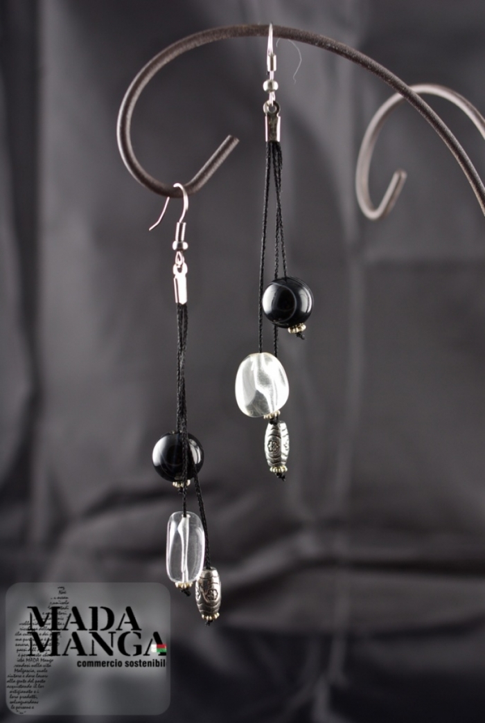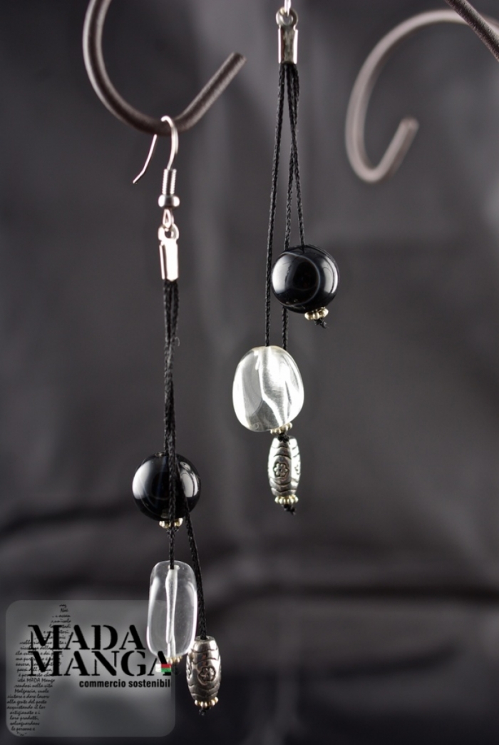 orecchini con particolari in alluminio riciclato,agata e quarzo ialino di prima qualità,interamente fatti a mano,lunghezza orecchini cm 7. La confezione regalo è composta da scatola in carta antemoro