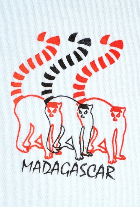 t-shirt con bellissimo cotone con serigrafia anteriore e posteriore raffigurante lemure,in 3 taglie e in 5 colori
