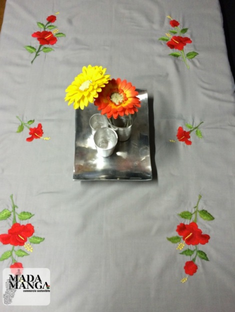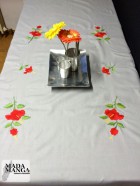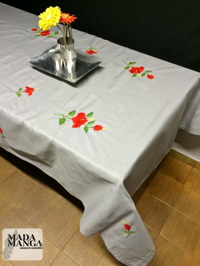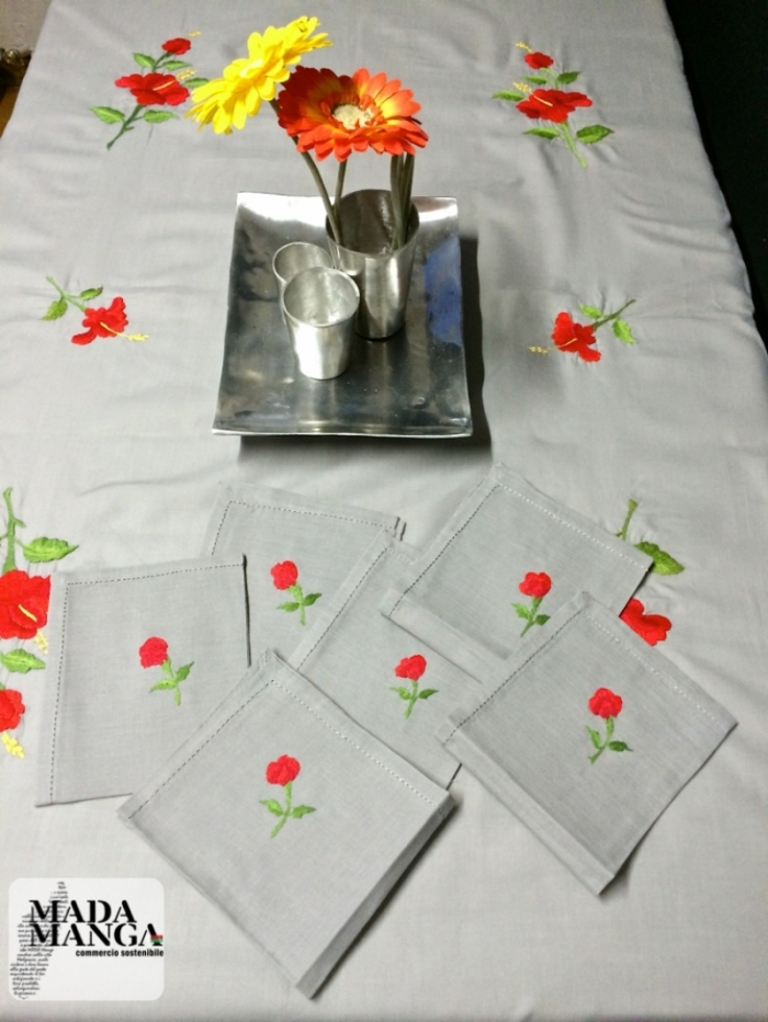 tovaglia in cotone con Ricami fatti a mano raffiguranti fiori,colore grigio,dimensioni 185x140cm con 6 tovaglioli anche questi ricamati a mano