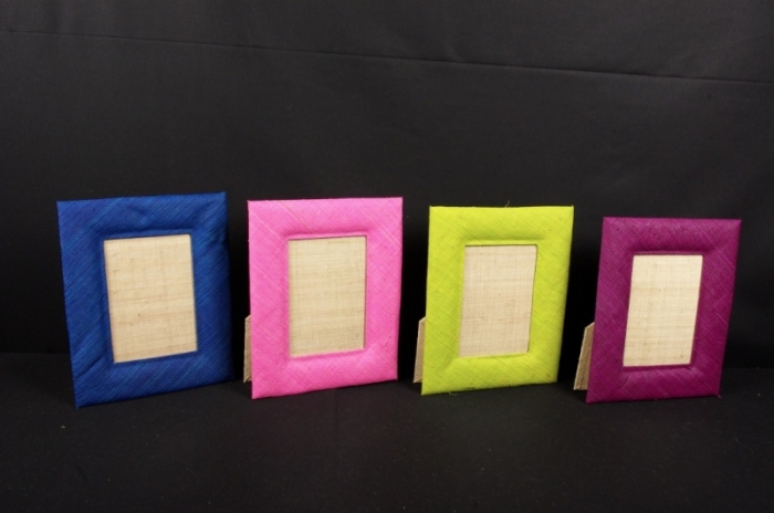 Portafotografie in Rafia con appoggio posteriore, realizzato artigianalmente in diversi colori, dimensioni cm.21,5x26,5h.