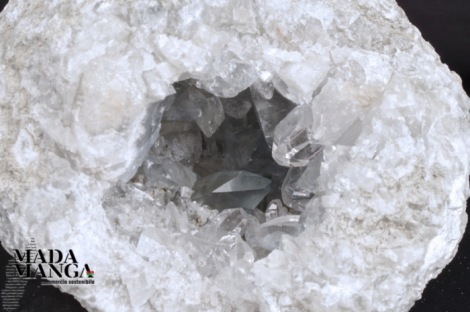 Geode di celestina con cavità con cristalli ben definiti di un azzurro intenso.