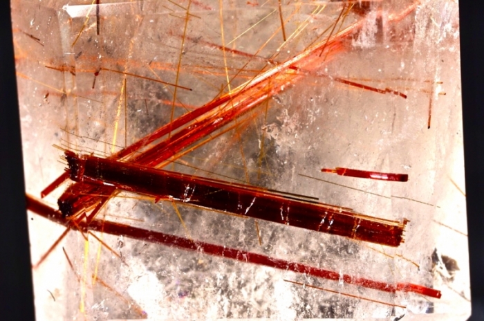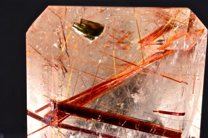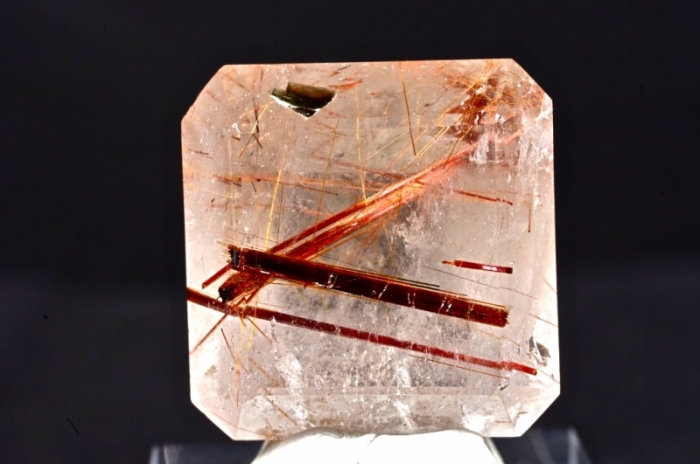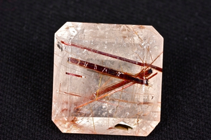 Quarzo con bellissime inclusioni di rutili, taglio quadrato, dimensioni mm.23x23.