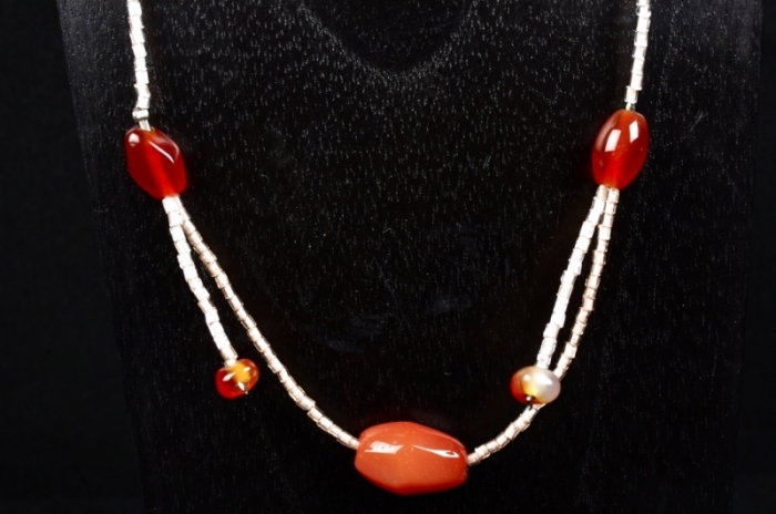 Collana con elementi in Corniola naturale, lunghezza cm.40.
