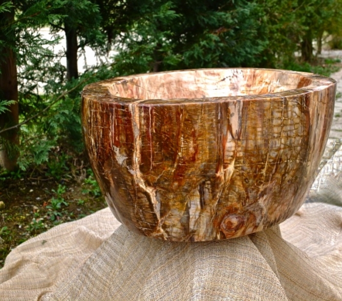 Lavandino in legno fossile interamente lavorato e lucidato a mano di dimensione 52x42x21 cm di altezza, peso circa 70 kg, lucidato esternamente per valorizzare ulteriormente colori e venature del legno fossile datato circa 90 milioni di anni. Il costo di trasporto verrà determinato al momento della decisione di acquisto per valutare modalità di imballo e consegna. TAVOLI E LAVABI NON SONO SOGGETTI A SCONTI CON COUPON O PROMOZIONI