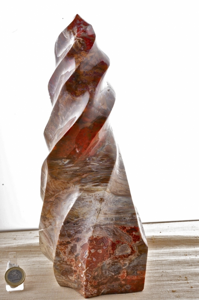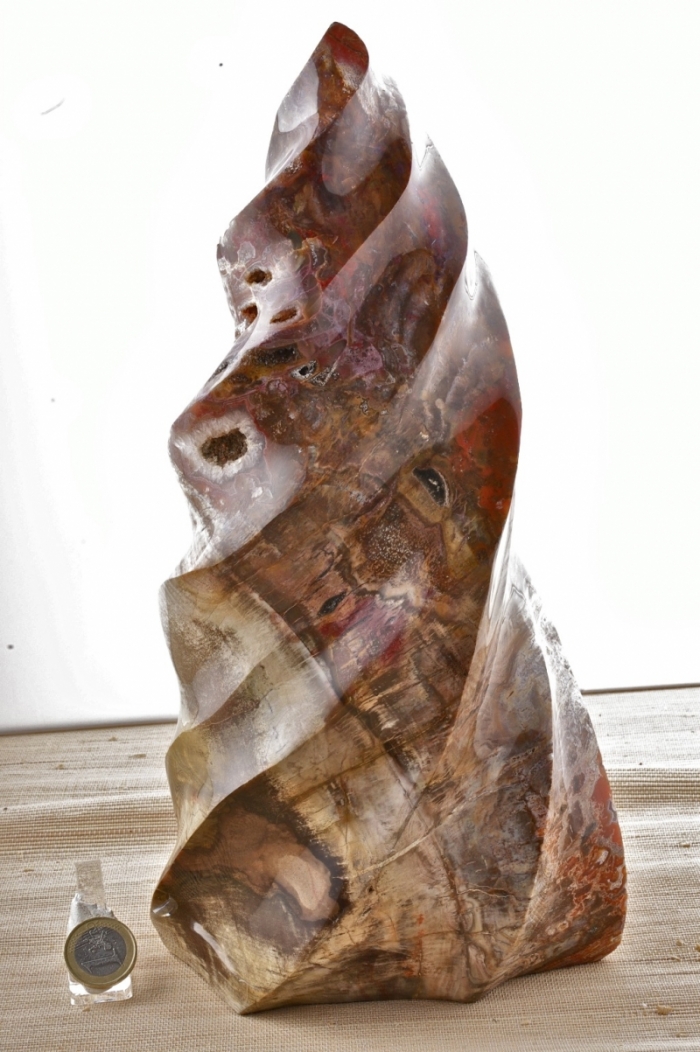 Legno fossile con colori molto belli e particolari lavorato a forma di fiamma, dimensione 15x12x30 cm altezza, peso 4560 grammi