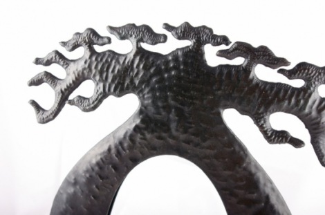 Specchio in Ferro Battuto riciclato finitura nero opaco a forma di Baobab, dimensioni cm.14x27H.