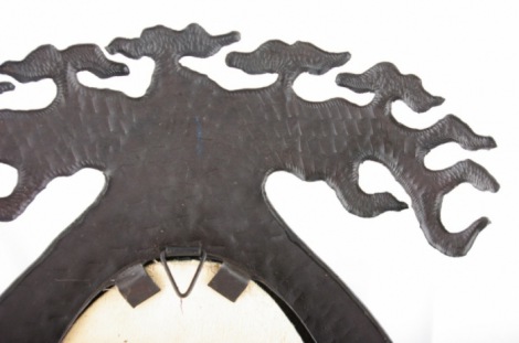 Specchio in ferro lavorato a mano a forma di Baobab, con gancio su retro per appendere a muro, dimensioni esterne 41x26 cm , dimensione specchio 14x27 cm