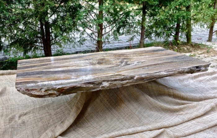 Bellissimo tavolo in legno fossile tagliato sulla lunghezza del tronco con corteccia su i 2 lati più lunghi, dimensione tavolo 120x58 cm , spessore 5 cm(venduto senza supporto) Contattarci per spese spedizione.
