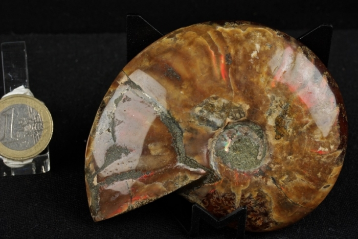 ammonite intera, con stupendi riflessi madreperlacei sulla superficie esterna, dimensione ammonite 8,5 cm, peso 164 grammi