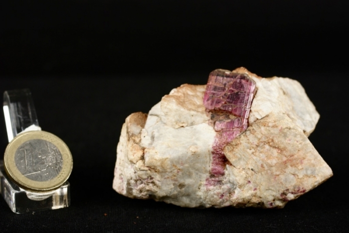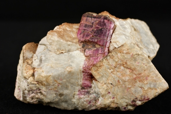 Tormalina Rossa su matrice di Felspato con ortoclasio spezzato, dimensione pezzo cm.7,7x2,8x5, peso 141 grammi.