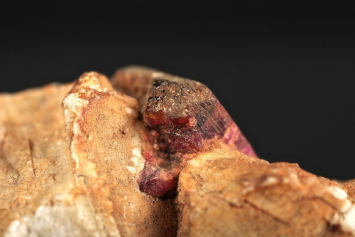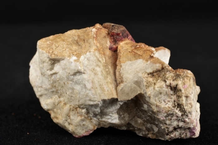 Tormalina rossa su matrice di Felspato con ortoclasio spezzato, dimensione pezzo 77x28x50 mm altezza, peso 141 grammi