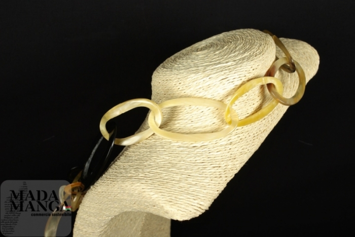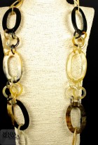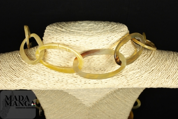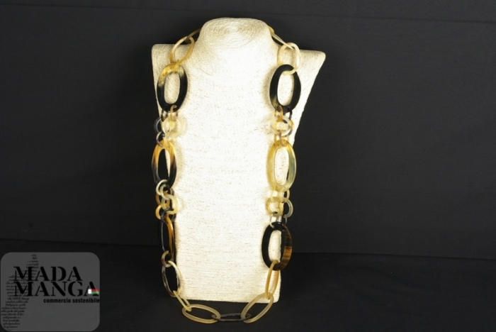 Collana con elementi ovali in Corno lucidato, lunghezza cm.90 totali, realizzata a mano su nostro design.