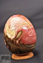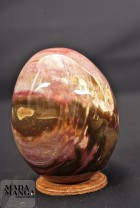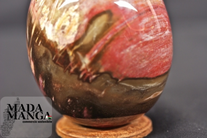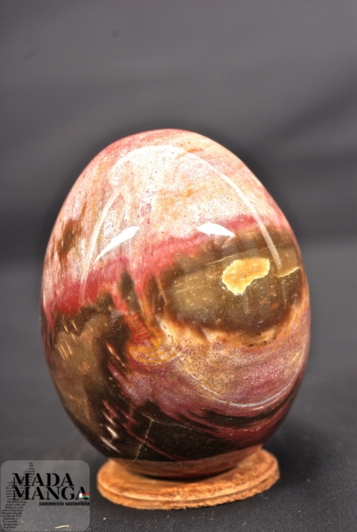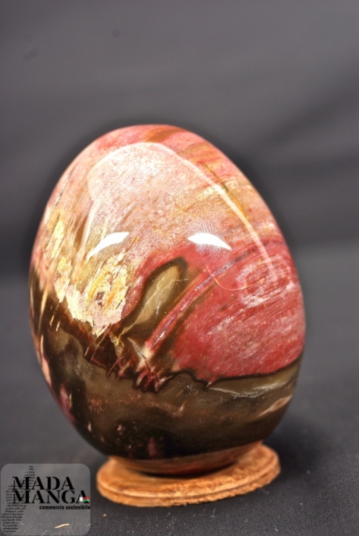 Uovo in legno fossile con bellissime sfumature di colore, dimensione della base 6,7 cm, altezza cm 8,8, peso 470 gr.