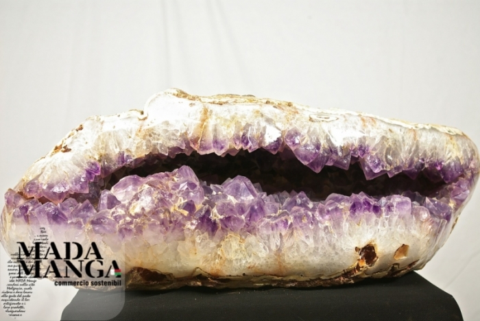 Grande geode in Ametista con bellissimi cristalli di un colore viola intenso. Dimensioni 60 x 45 x 22 cm altezza. Profondità 17 Cm