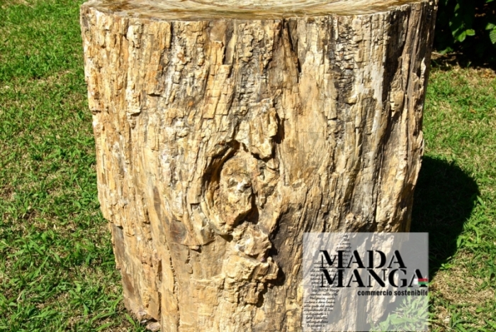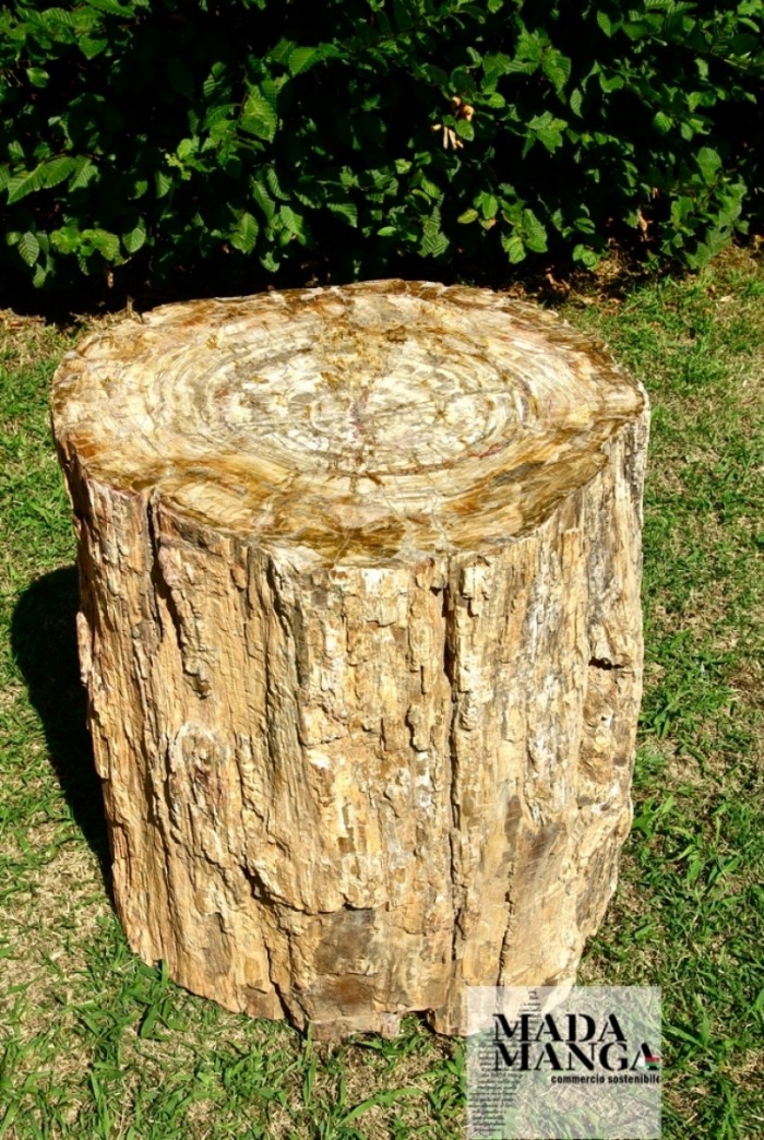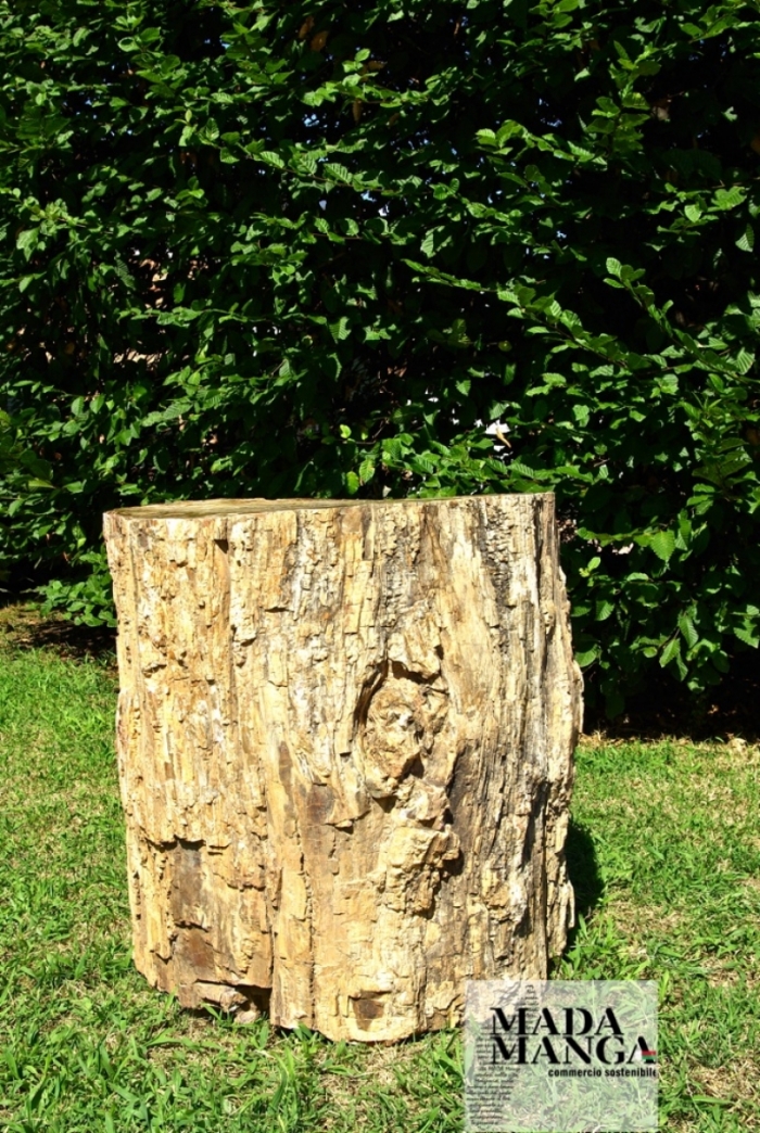 Grande tronco di legno fossile con 2 nodi su corteccia esterna per precedenti rami, colore interno di tonalità di marrone con venature rosse, dimensione tronco 60x67 cm di diametro per una altezza 65 cm, peso circa 530 kg