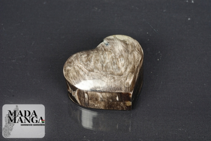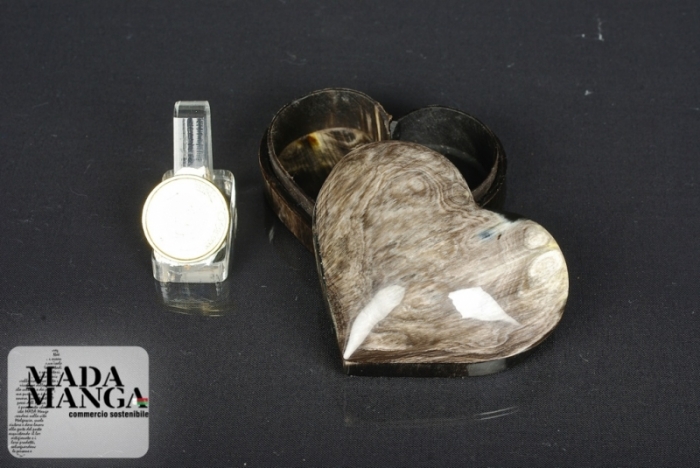 Scatolina in corno lucidato a forma di Cuore, realizzata a mano, dimensioni cm.6,8x6x3,7h.