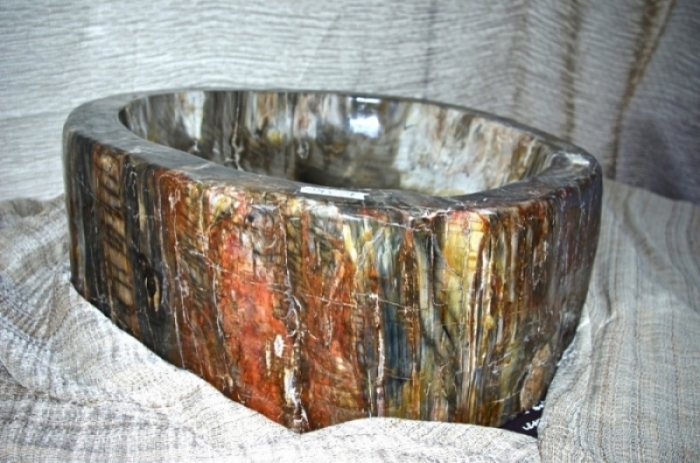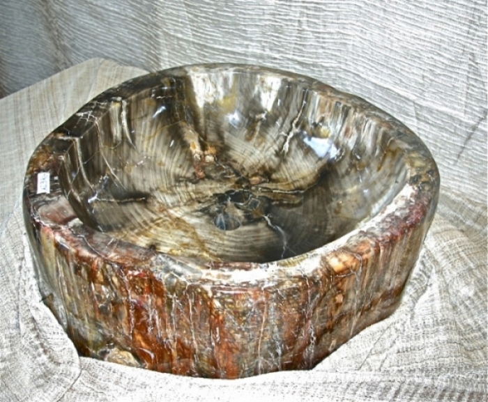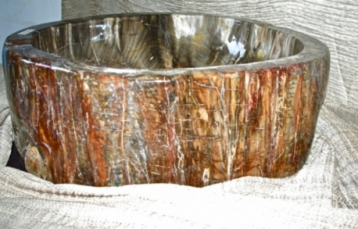 Lavandino in Legno Fossile interamente lavorato e lucidato a mano con esterno lucidato per valorizzare ulteriormente colori e venature del legno fossile. Dimensione 69 x 64 x 23 cm di altezza. Peso circa 123 kg. Colori caldi nelle sfumature del Marrone. Con presenza di rosso, nero e poco verde. Forte presenza del colore rosso-mattone sulla superficie esterna. Questo lavandino è stato ricavato da una pianta in legno fossile datata circa 100 milioni di anni. Il costo di trasporto verrà determinato al momento della decisione di acquisto per valutare modalità di imballo e consegna. TAVOLI E LAVABI NON SONO SOGGETTI A SCONTI CON COUPON O PROMOZIONI